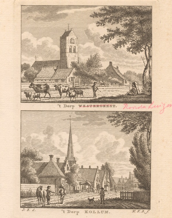 Gezicht op de kerk te Roordahuizum en het dorp Kollum