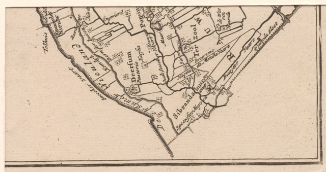 Rauwerderhem, onderdeel van de Schotanus-Vegelin wandkaart van Frieslant
