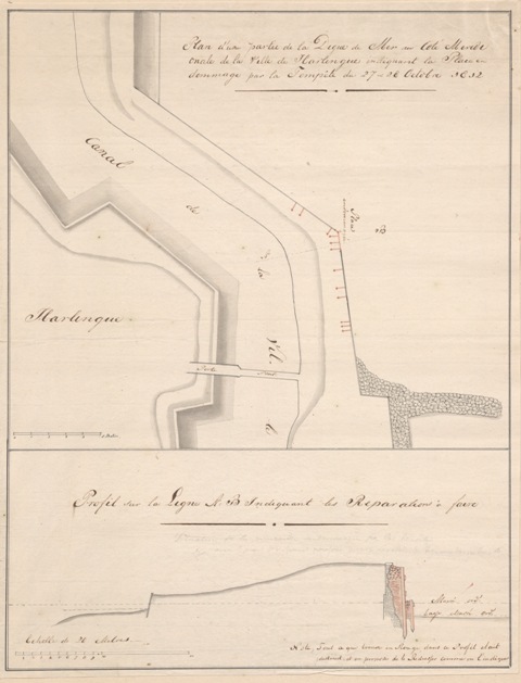 Plan d'une partie de la Digue de Mer au coté méridionale de la ville de Harlingue