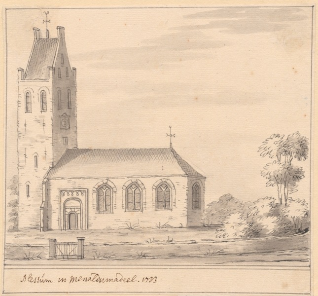 Gezicht op de kerk met stompe toren te Blessum