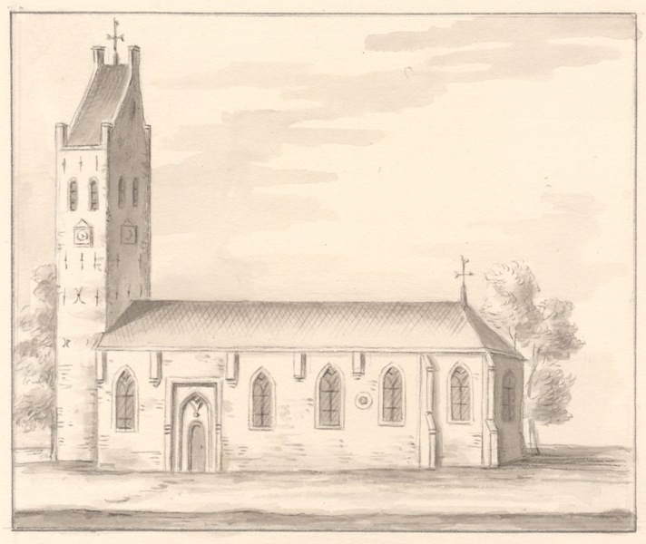Gezicht op de kerk te Boksum in Menaldumadeel