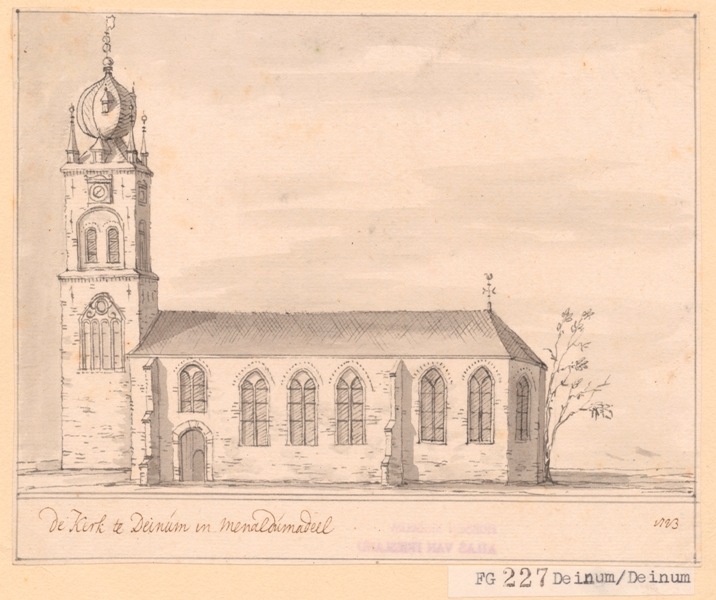 Gezicht op de kerk te Deinum