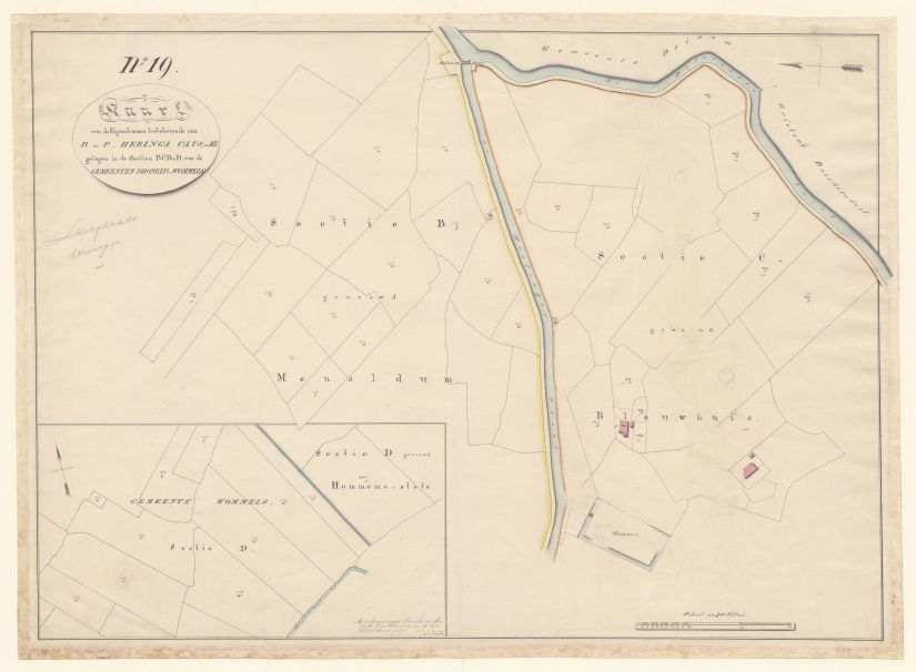 Kaart van de eigendommen no. 19 toebehorende aan R. en P. Heringa Cats van de Gemeenten Dronrijp en Wommels