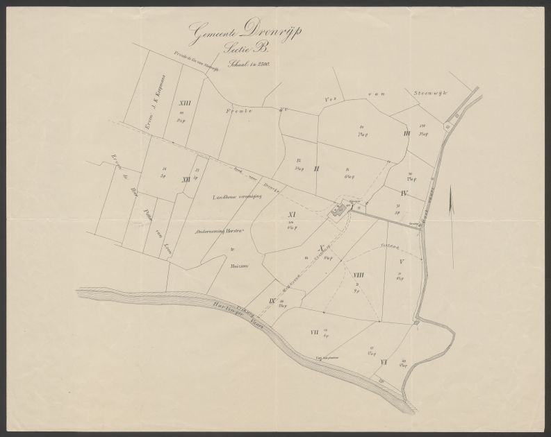 Kadasterkaart van de gronden in de buurt van de Harlingervaart te Dronrijp