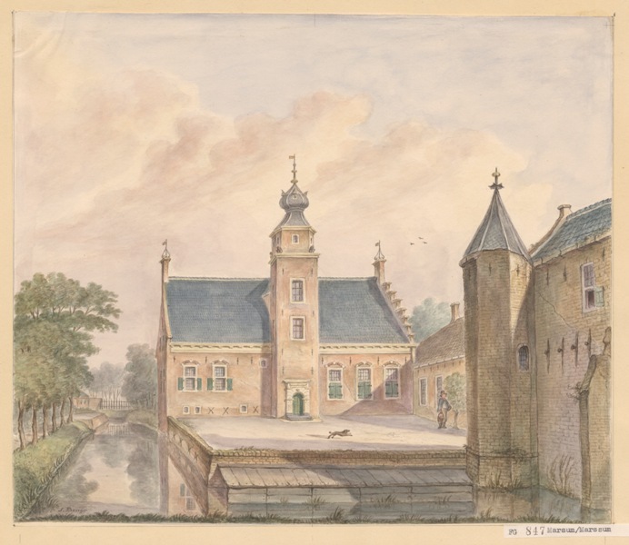 Gezicht op de achterzijde van het Popta Slot te Marssum