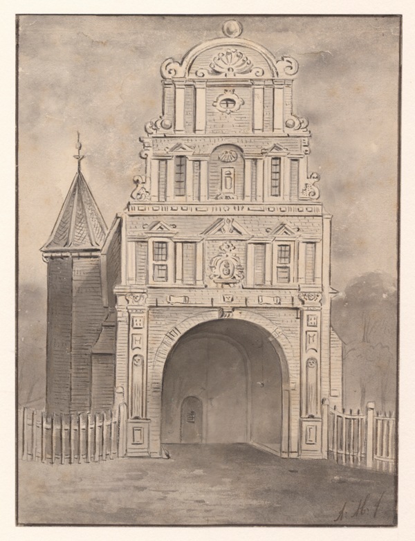 Gezicht op de Hoge Poort van Heringa state ofwel Popta slot te Marssum