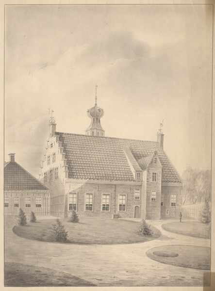 Gezicht op de tuingevel van het Popta Slot te Marssum