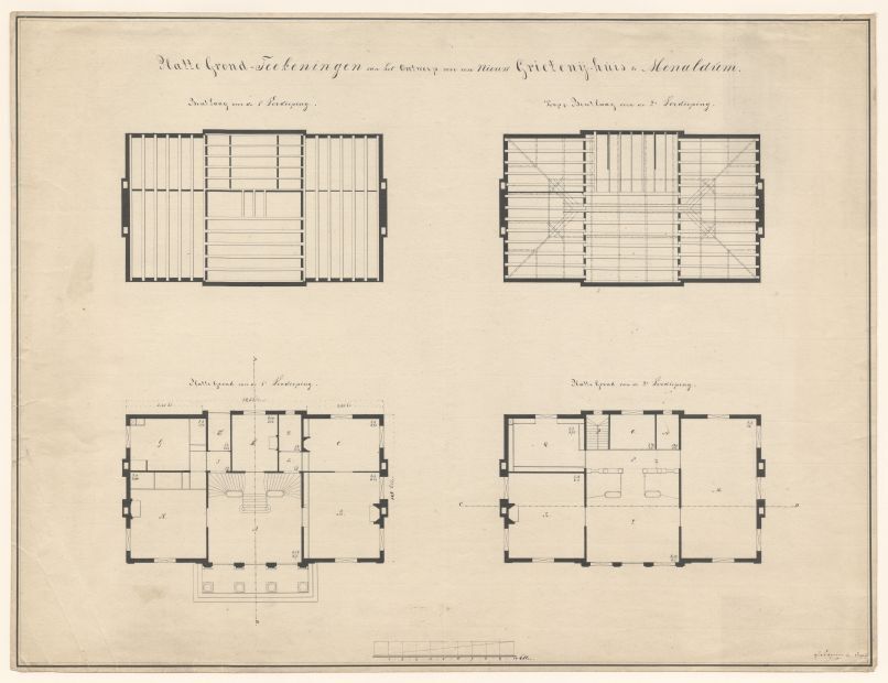 Plattegrond van het ontwerp voor een nieuw grietenijhuis te Menaldum