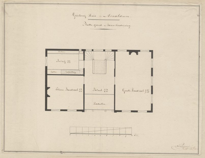 Plattegrond van de bovenverdieping van een grietenijhuis te Menaldum