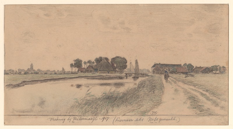 Gezicht op de vaart naar de brug te Ritsumazijl in Menaldumadeel