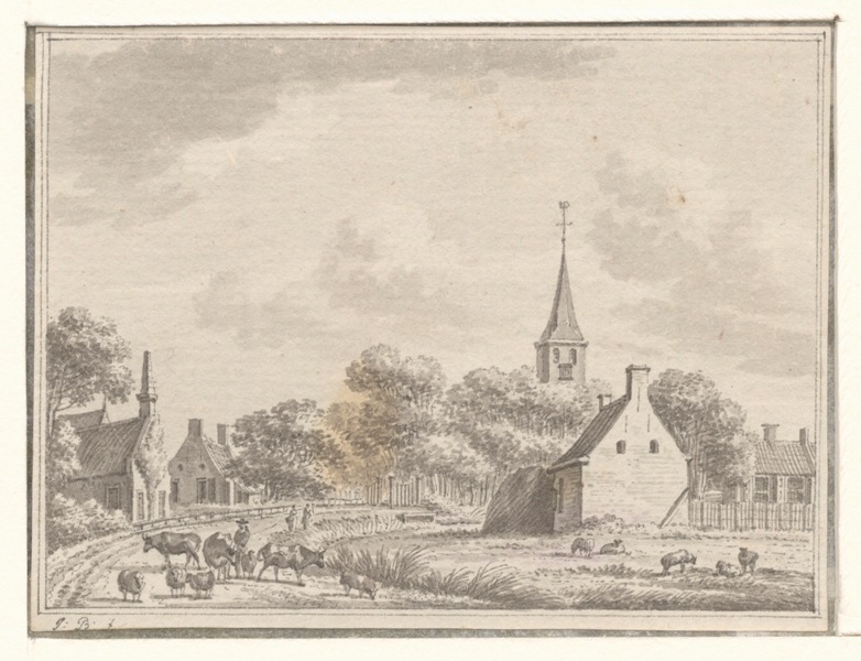 Gezicht op het dorp Dongjum aan de zuidzijde