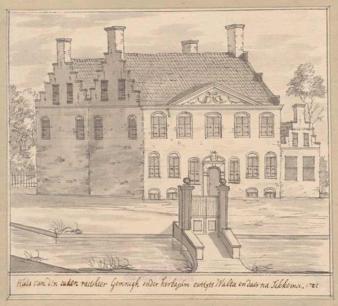 Gezicht op het huis van de oude Raedsheer Gemnigh te Herbaijum