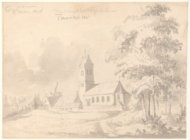 Gezicht op het dorp Baard in Baarderadeel langs de terp