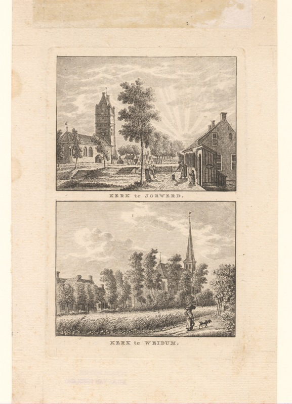 Gezicht op de kerk te Jorwert en de kerk te Weidum