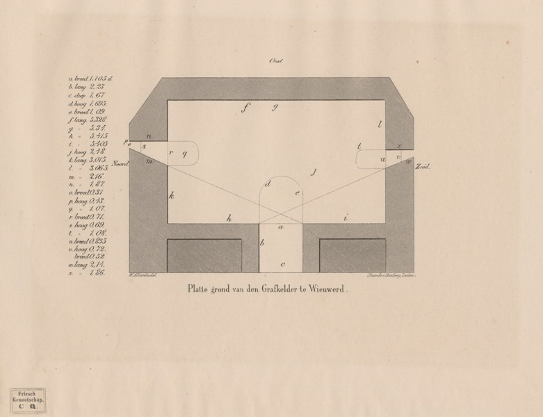 Plattegrond en doorsnede van de grafkelder te Wieuwerd