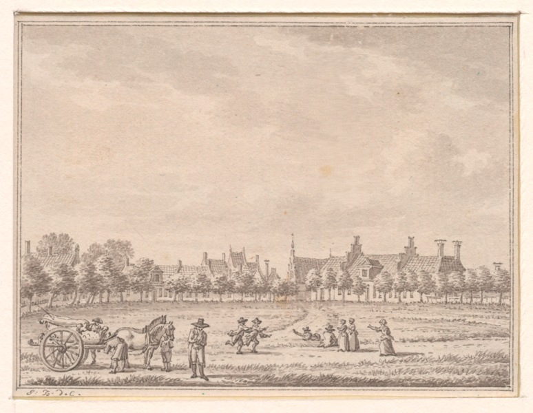Gezicht op het dorpsplein en Sminia State te Wommels