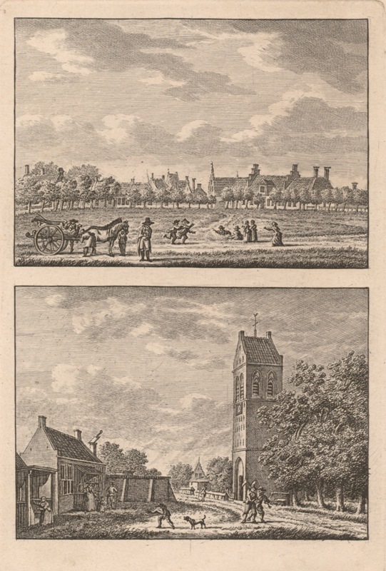 Gezicht op het grote plein en de kerk te Wommels
