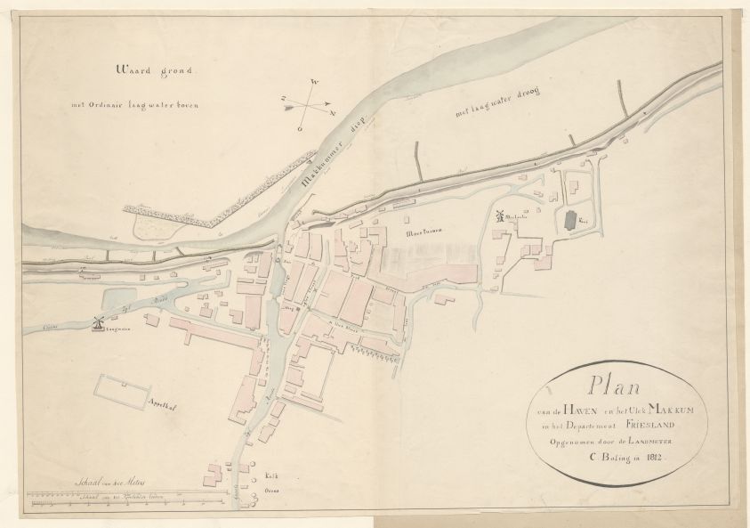 Overzicht van de haven op het vlek Makkum