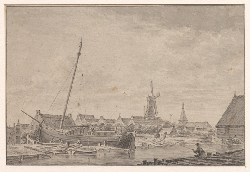 Gezicht van de kleine Melle op de kerk te Makkum
