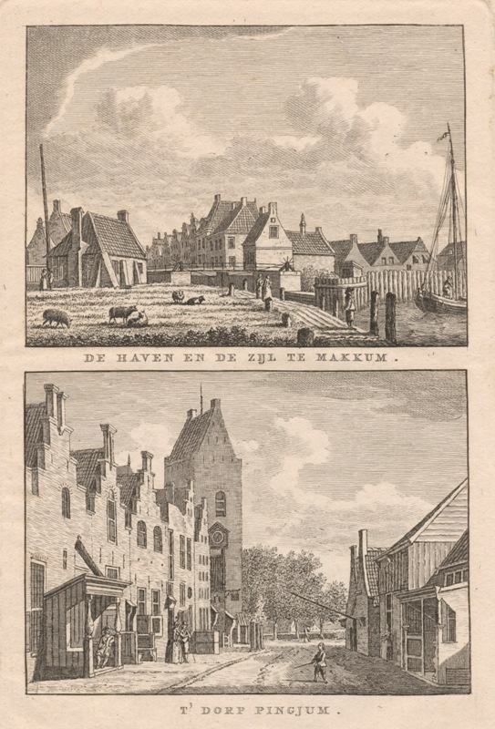 Gezicht op de Haven en de Zijl te Makkum en in het dorp Pingjum
