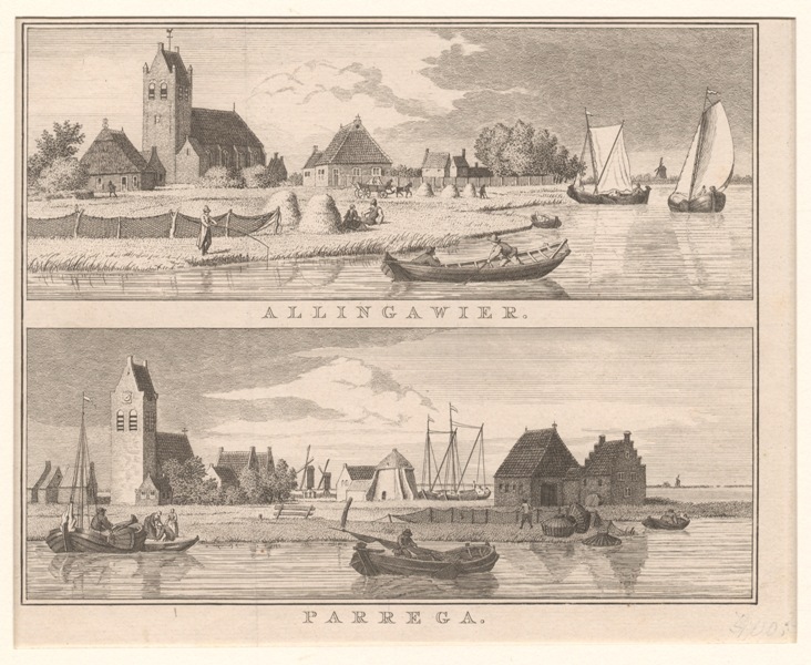 Gezicht op het dorp Allingawier en het dorp Parrega