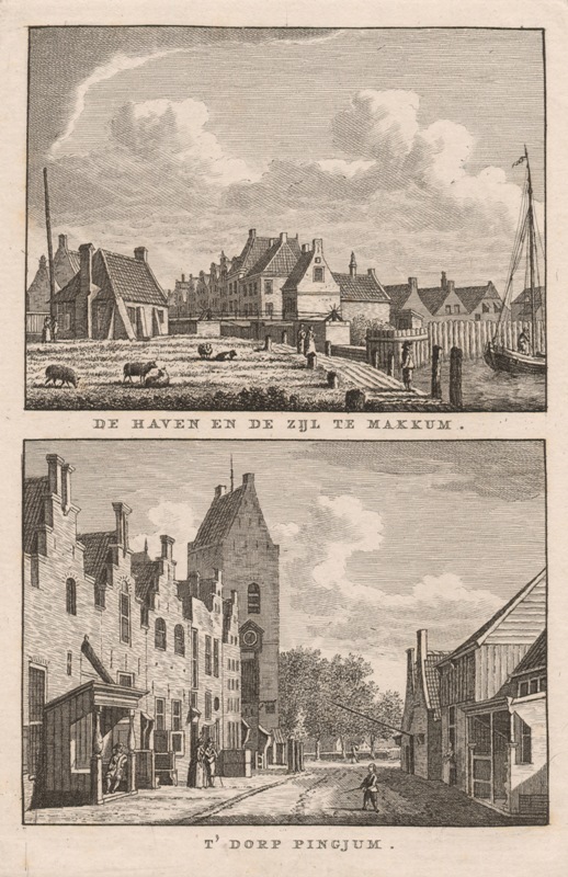 Gezicht op het dorp Makkum en het dorp Pingjum