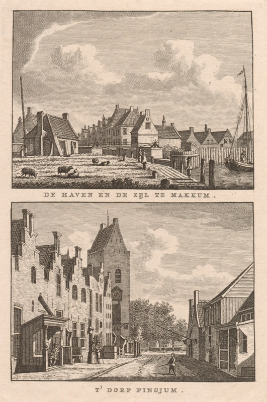 Gezicht op het dorp Makkum en het dorp Pingjum