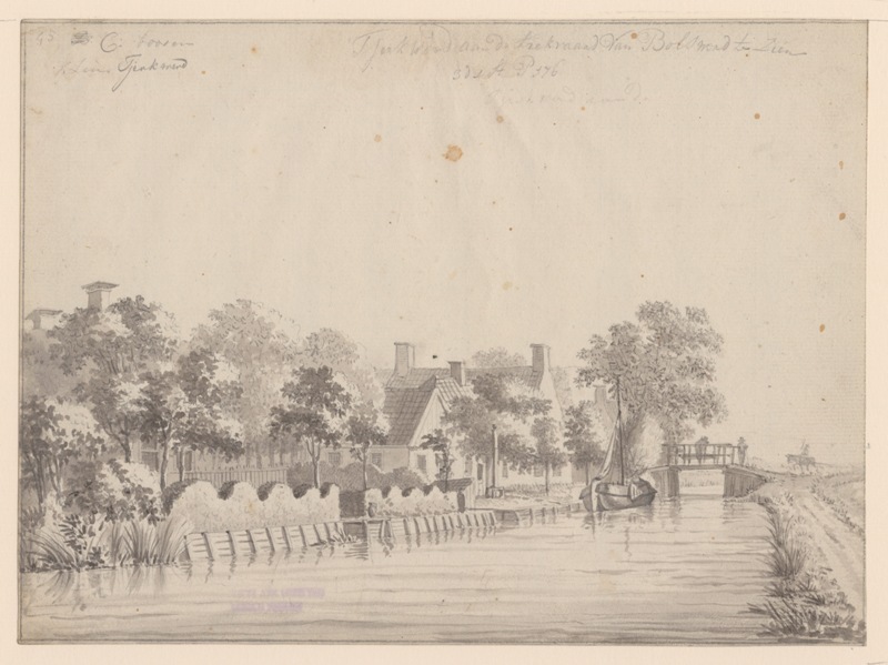Gezicht op het dorp aan de trekvaart te Tjerkwerd