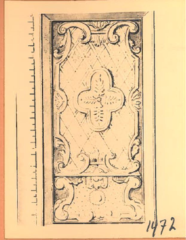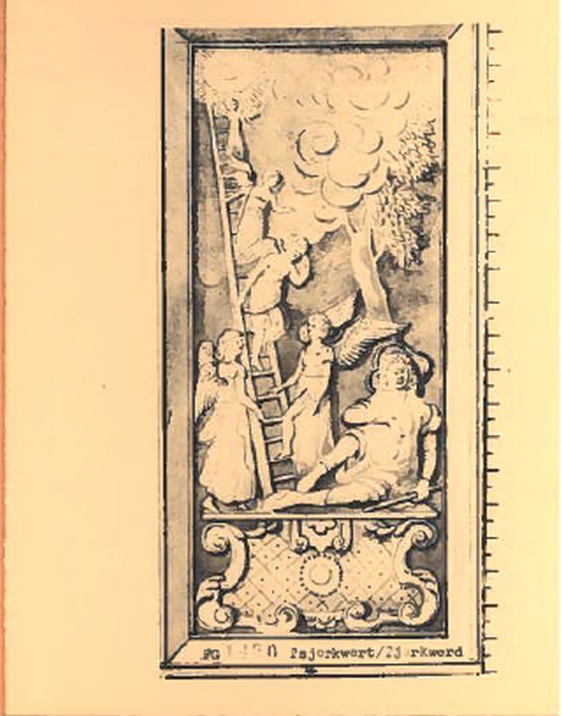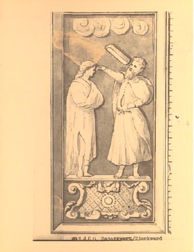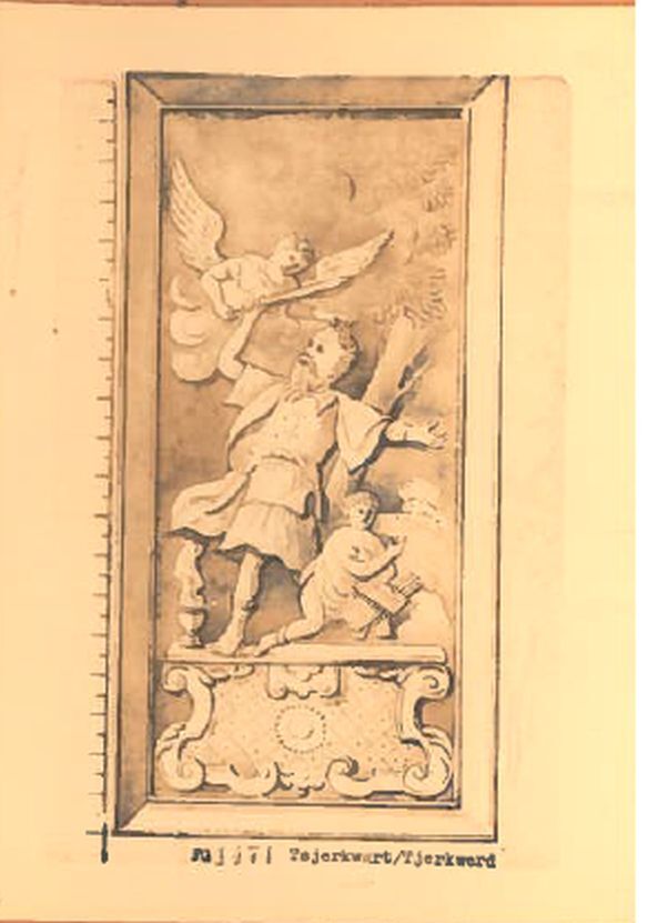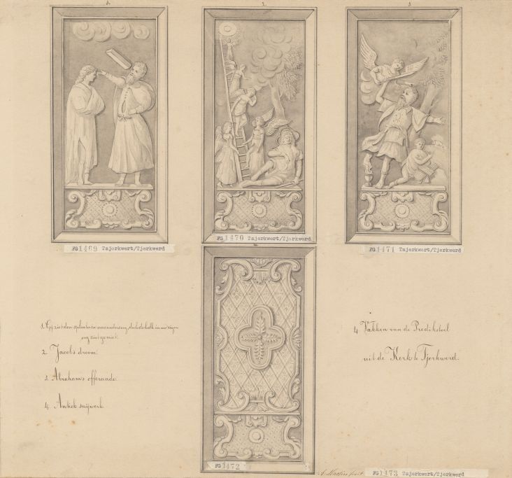 Gezicht op vier vakken van de Predikstoel uit de kerk te Tjerkwerd