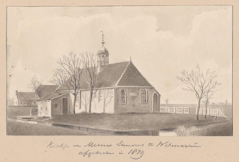 Gezicht op het kerkje van Menno Simons te Witmarsum