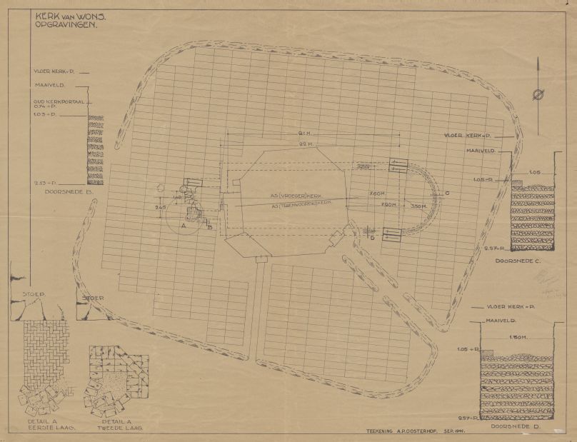 Opgravingstekening van de kerk te Wons