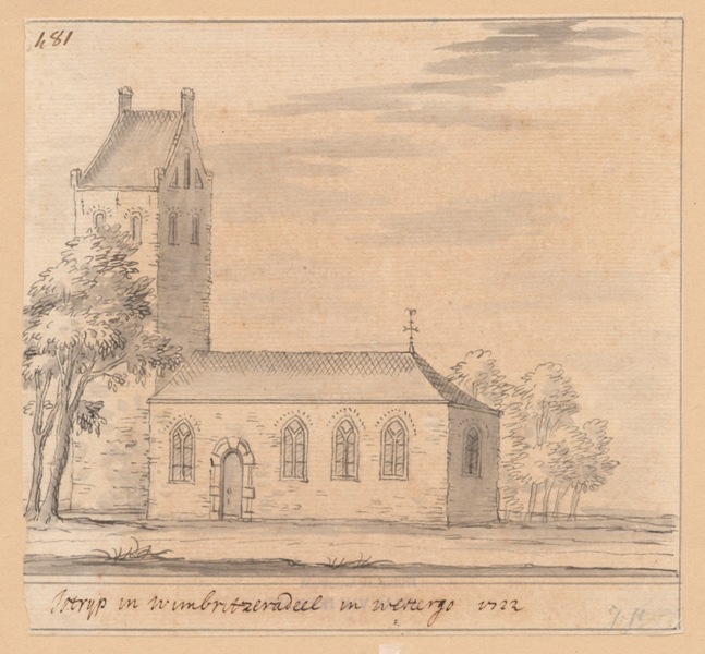 Gezicht op de kerk met stompe toren te Jutrijp in Wymbritseradeel