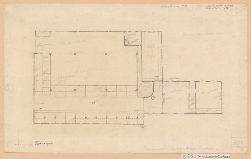 Plattegrond van de boerderij van Jentsje Bootsma te Loënga