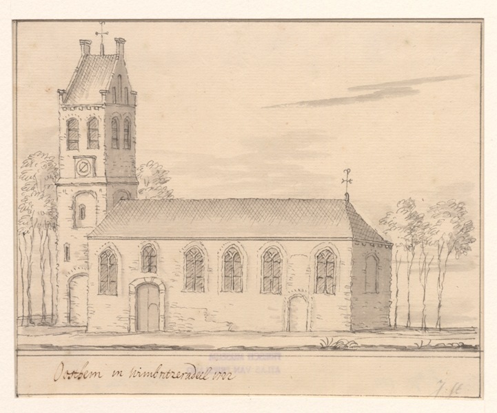 Gezicht op de kerk te Oosthem in Wymbritseradeel