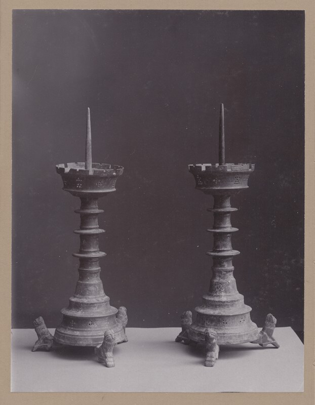 Twee gotische kandelaars voor elk een kaars uit de kloosterschat van Nijeklooster Fries Museum te Leeuwarden