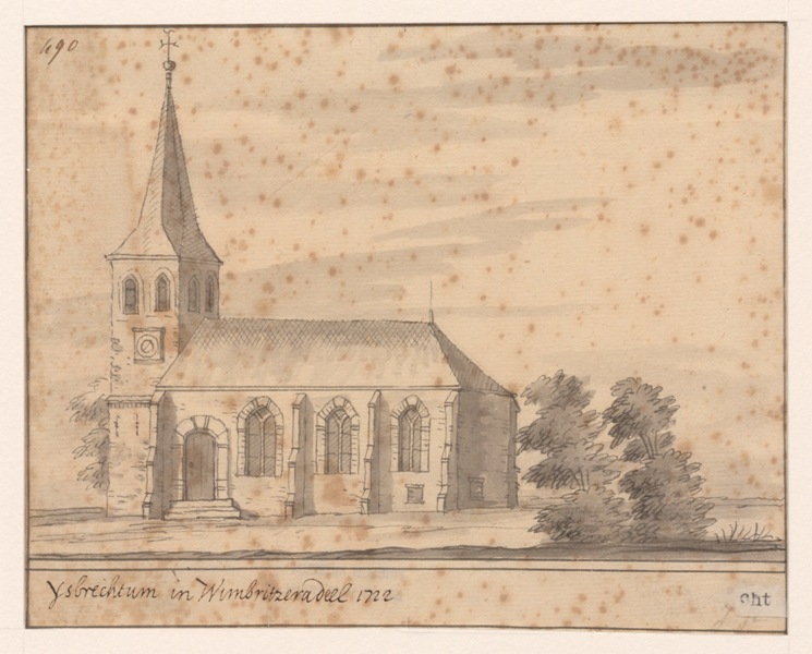 Gezicht op de kerk te Ysbrechtum in Wymbritseradeel