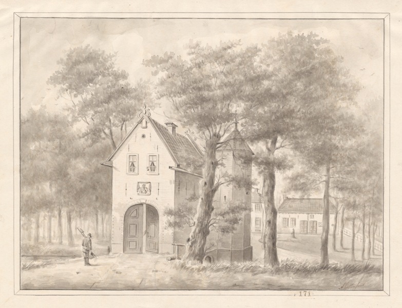 Gezicht op de slotpoort van Epema State te Ysbrechtum