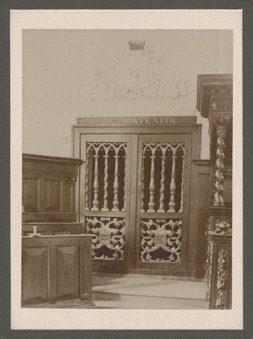 Deur met beeldhouwwerk in de Nederlands Hervormde Kerk te Sint Annaparochie