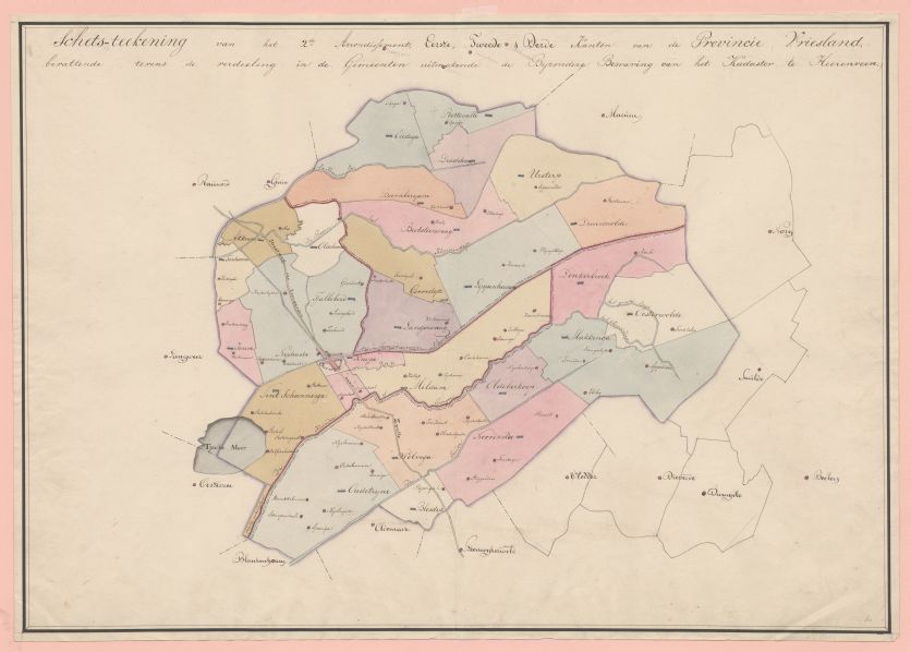 Kaart van het tweede arrondissement met de kantons onder Heerenveen
