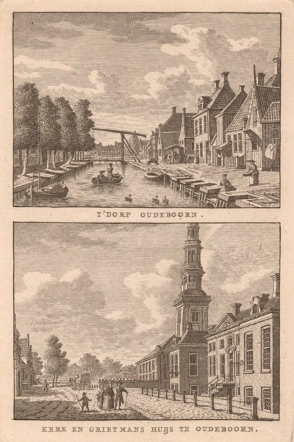 Gezicht in het dorp en op de kerk en Grietmanshuis te Aldeboarn