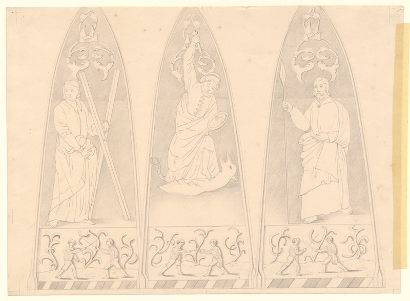 Voorstellingen van de heilige Andreas, Margaretha en de heilige Thomas op het plafond van de absis van de kapel te Terkaple
