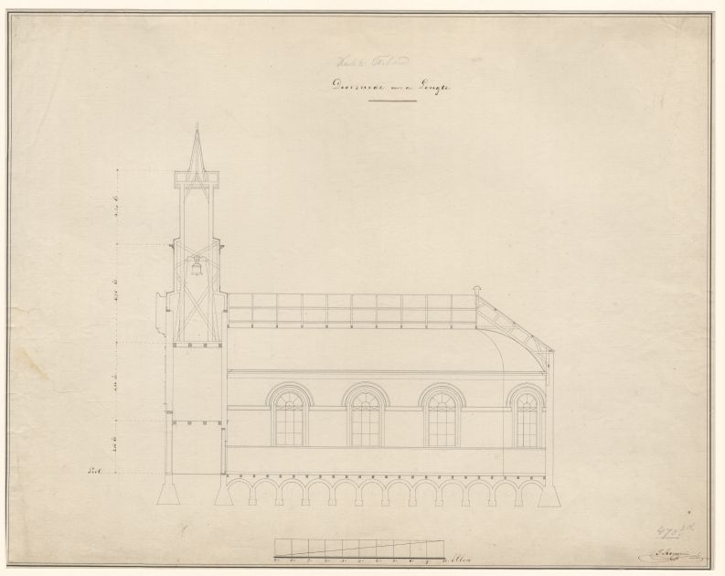 Voorstelling in lijnen van een architectonisch object langs geometrische weg, die niet een indruk weergeeft, zoals het gebouw door het menselijk gezicht gezien kan worden, maar de abstracte driedimensionale gedaante van het object, verkregen door stelselmatige berekening en opmeting. De weergave geschiedt op schaal en meestal in orthografische projectie. Voor de aanschouwelijkheid worden er soms perspectivische voorstellingen bijgevoegd. Een stel architectuurtekeningen bestaat gewoonlijk uit plattegrond(en) of horizontale doorsnede(n), gevelopstanden, lengte- en dwarsdoorsneden, vaak ook details. Zoals hiervoor werd aangeduid, is de architectuurtekening:–ontwerp voor een voorgenomen bouwwerk of bouwdeel, ev. met varianten. Voor de uitvoering zijn nog werktekeningen nodig. In het eerste stadium kan een ontwerp schetsmatig, algemeen oriënterend en suggestief zijn. In alle perioden sinds de vroege M.e. zijn ontwerptekeningen gemaakt. Ook symbolische ontwerpen, zoals het Pantheon der Mensheid van Berlage uit 1915, kan men hiertoe rekenen.–opmeting van een bestaand object, ter herinnering, als voorbeeld, met het oog op herstel, ev. een reconstructie, b.v. het schetsboek van Villard de Honnecourt (c. 1235), de talrijke restauratie-ontwerpen van architecten in XIX-XX en de sinds de renaissance geliefde reconstructie van antieke bouwwerken. Het oudst bekende document op dit gebied is de plattegrond voor de abdij van St.-Gallen in Zwitserland, dat in het archief van deze abdij bewaard is. Het is een ideaal schema dat iemand uit de hofkring van Karel de Grote omstreeks 820 aan abt Gozbert toezond. Het is slechts gedeeltelijk verwezenlijkt, maar zeer belangrijk voor de kennis van de vroeg-m.e. aanleg van kloosters. De opstand van een aantal gebouwen is in het horizontale vlak neergeslagen, zoals ook op een schetsmatige plattegrond van c. 1150 van de abdij van Canterbury.Meer recht op de naam architectuurtekening heeft een aantal tekeningen uit de gotische tijd, waarvan wij aanstippen verschillende tekeningen in het Livre de portraicture van Villard de Honnecourt. Hier worden op geometrische basis (driehoeken, rechthoeken, diagonalen) onderdelen aangegeven betreffende de kathedraal van Reims en het maaswerk daarvan, roosvenster te Lausanne, toren van Laon, plattegronden van Meaux en Cambrai (Kamerijk). Verder bleven vele tekeningen uit XIII-XV bewaard, o.a. te Reims, Straatsburg, Keulen, Clermont, Limoges, St.-Quentin, Milaan, Wenen, Barcelona. Interessant zijn een ontwerp uit c. 1230 voor de O.L.V.kerk te Trier op een steen in een traptoren en M. Röritzers gedrukte boekje uit 1486 over ‘der Fialen Gerechtigkeit’. Ook in de Nederlanden bleven talrijke tekeningen bewaard, uit de late M.e. (torens te Breda, Mechelen, Zierikzee en Mons, stadhuis te Gent) en vele uit latere perioden. In het kasteel Cannenburch te Vaassen (Gld.) is een in de pleisterlaag ingekraste tekening op ware grootte aangetroffen van een gevelbeëindiging. Met de uitvinding van de boekdrukkunst en vooral na die van het centrale perspectief en de theoretische grondslagen van de projectie verschijnen de ontwerpen en reproducties in talloze werken over architectuur ( ordeboek, architectuurtraktaat).Kenmerkend voor de architectuur uit de Noord-Europese baroktijd is een eigenaardige behandeling, waarbij uitspringende architectuurdelen wit worden gelaten. Eind XVIII is de toen geliefde scenografie (verkort weergegeven tekeningen, ook voor toneeldoeken) van invloed, getuige de ‘vedute’ (1745-’75) van Piranesi c.s.. (Haslinghuis) https://data.cultureelerfgoed.nl/term/id/cht/25df5f68-005c-45b0-afba-d6f13b9b41e1