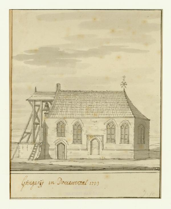 Gezicht op de kerk met klokstelling te Goïngarijp