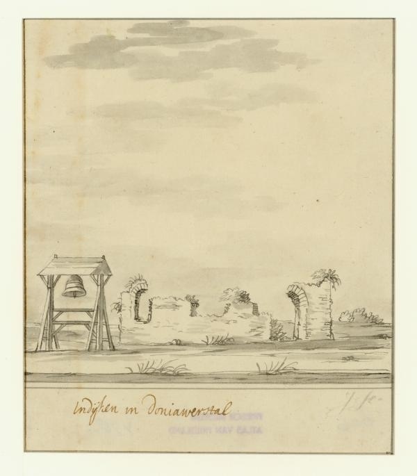 Gezicht op de bouwval van de kerk te Indijk in Doniawerstal