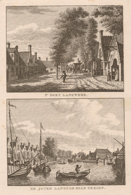 Gezicht op het dorp Langweer en het dorp Joure langs de kolk