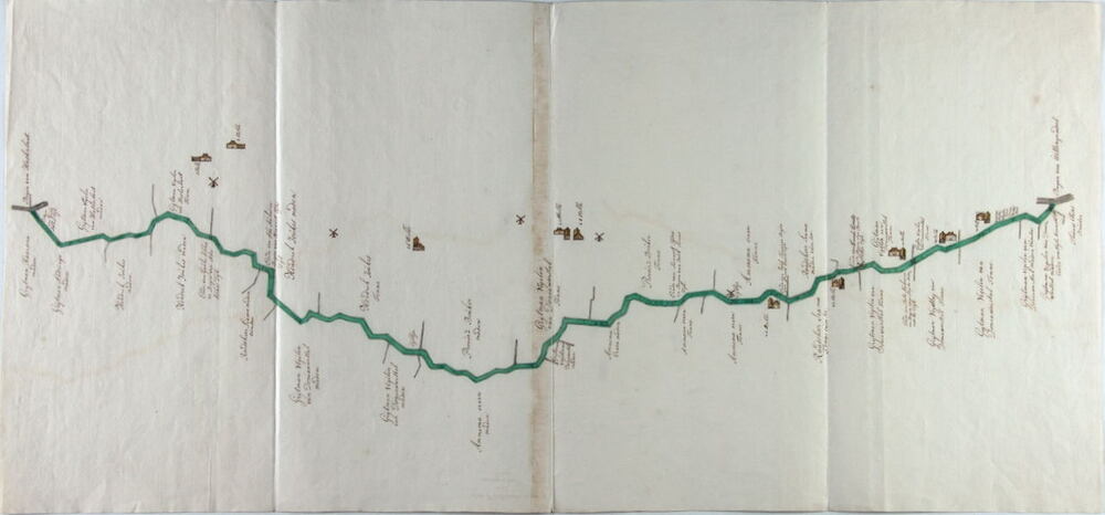 Kaart van de oude Haskerdijker rijdweg vóór t' aenleggen van de Tolweg