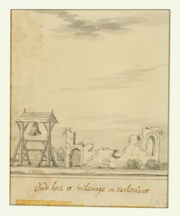 Gezicht op de oude kerk te Snikzwaag in Haskerland