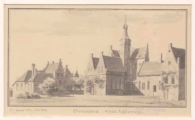 Gezicht op de achterzijde van Oenemastate te Heerenveen