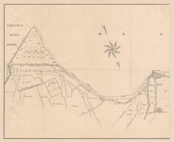 Kaart van landen in het buitendijkse veld en van de zeedijk van Lemmer tot de Worstsloot