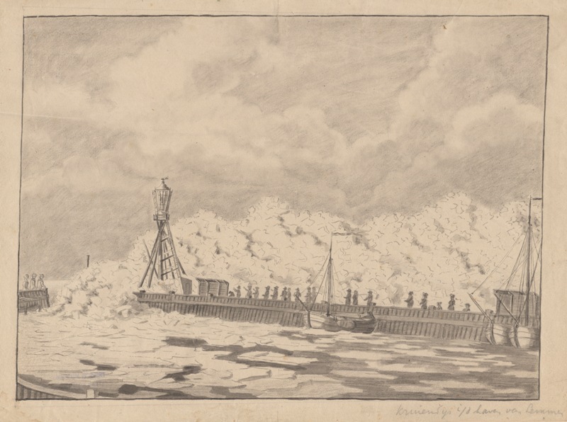 Gezicht op kruiend ijs in de haven te Lemmer